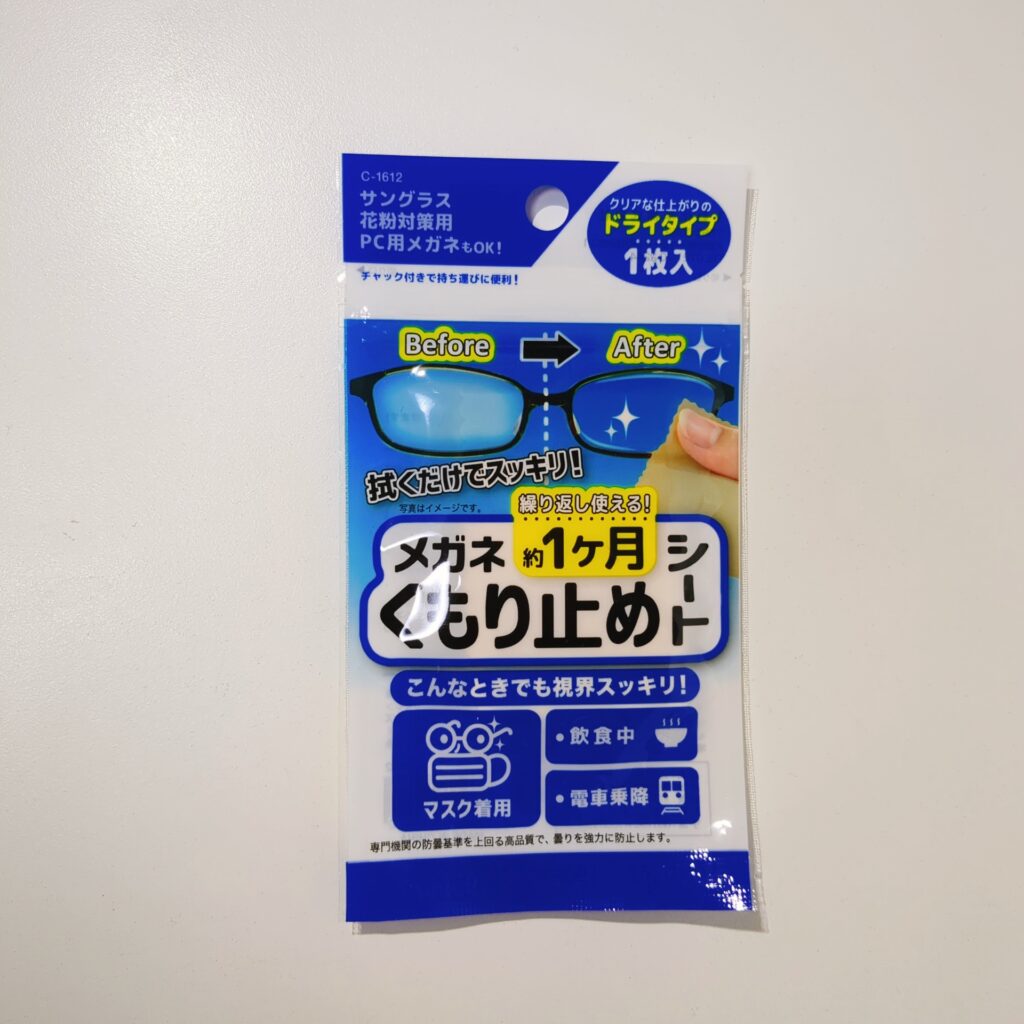 ワッツで買った不動化学株式会社の「メガネくもり止めシート」をレビュー。これは、冬には大活躍な定番商品