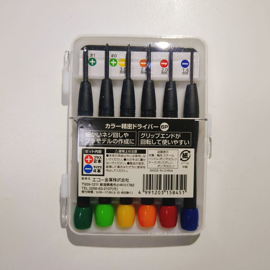 ダイソーで買った「カラー精密ドライバー6P」をレビュー。定番の細い精密ドライバーよりも回しやすくて、